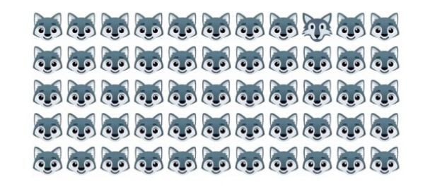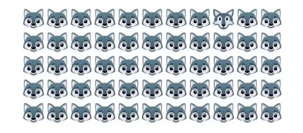 Es gibt fünfundfünfzig Bilder eines Wolfs, aber nur eines davon unterscheidet sich deutlich von den anderen. Es dauert 5 Sekunden, um den Fremden im Rudel zu finden.