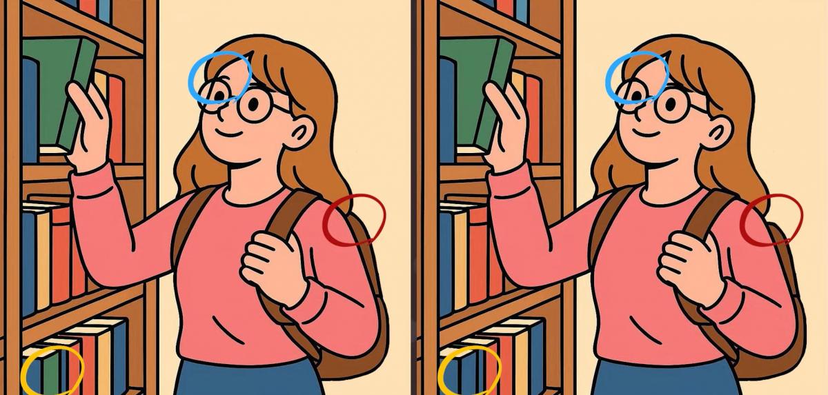 Sind Sie also bereit für die nächste Herausforderung? Schauen Sie sich zwei Bilder eines Mädchens an, das in einer Bibliothek Bücher auswählt. Auf den ersten Blick mögen sie gleich aussehen, aber es gibt 3 kleine Unterschiede. Glaubst du, dass du sie alle in 19 Sekunden finden kannst? Probiere es aus und teste deine Sehschärfe!
