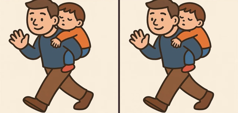 Sind Sie also bereit für die nächste Herausforderung? Schauen Sie sich die beiden Bilder eines Mannes, der ein Baby auf dem Rücken trägt, genau an. Auf den ersten Blick mögen sie identisch aussehen, aber es gibt 3 kleine Unterschiede. Glaubst du, dass du sie alle in 19 Sekunden finden kannst? Probieren Sie es aus und testen Sie Ihre Sehschärfe!