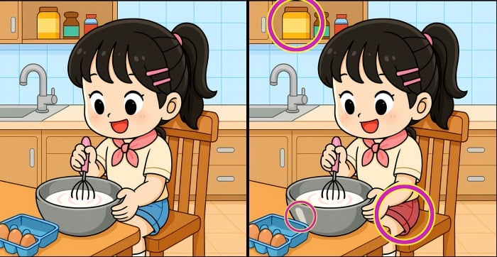Sind Sie also bereit für die nächste Herausforderung? Schauen Sie sich zwei Bilder eines Mädchens an, das Kuchenteig knetet. Auf den ersten Blick mögen sie identisch aussehen, aber es gibt 3 kleine Unterschiede. Glaubst du, dass du sie alle in 51 Sekunden finden kannst? Probiere es aus und teste deine Sehschärfe!
